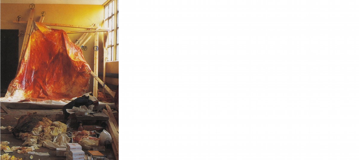 This is the catalogue of Masato Kobayashi's solo exhibition at Stedelijk Museum Voor Actuele Kunst Gent (S.M.A.K.) in Belgium. According to Jan Hoet, Kobayashi's work represents the struggle between the two-dimensional surface and three-dimensional space. It pays tribute to the art of painting, yet also seems to destroy painting. The catalogue also includes artist biography and a letter from the artist's friend Cai in New York.
